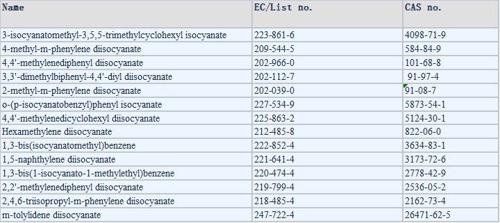 202两年多11月24日后面 ,二异氰酸酯不能够简单、的物质成分表或混物状态在工业园和職業领域中完成操作 ,否则: