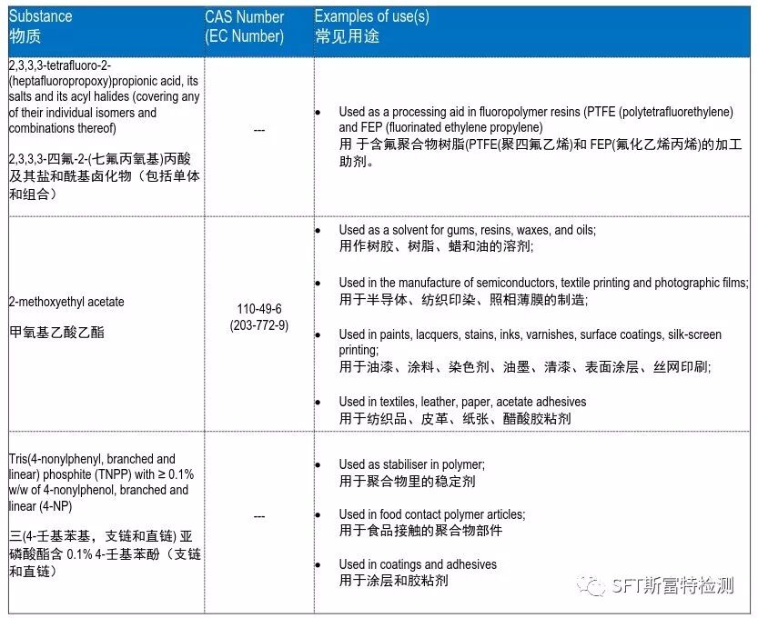 提案增高的有3组材质见下表 ,若提案的材质均被认为书为SVHCs ,到去年的六月侯选人明细表里的SVHCs将从197增高至201种 ,另1种材质4-叔丁基苯酚4-tert-butylphenols ,就已被欧盟委员会提案认为书SVHC ,可是会在下有一次内容更新时加到侯选人明细表里 。